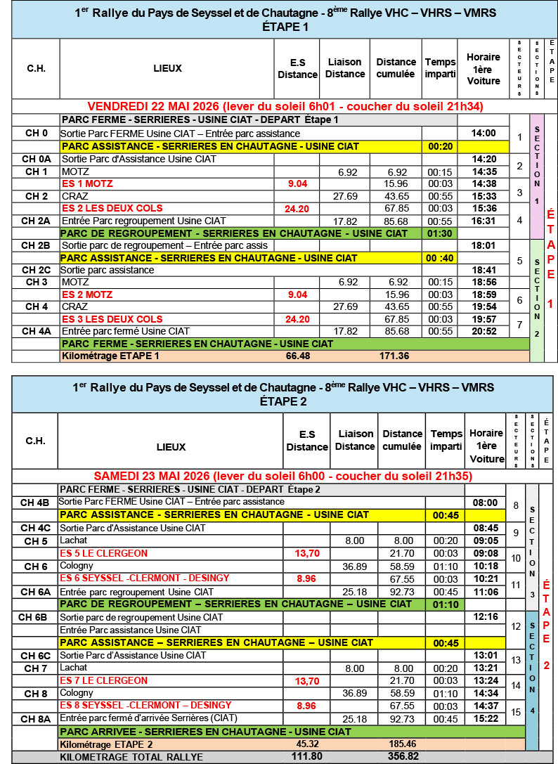 Accueil » 1er Rallye du Pays de Seyssel et de Chautagne » Horaires